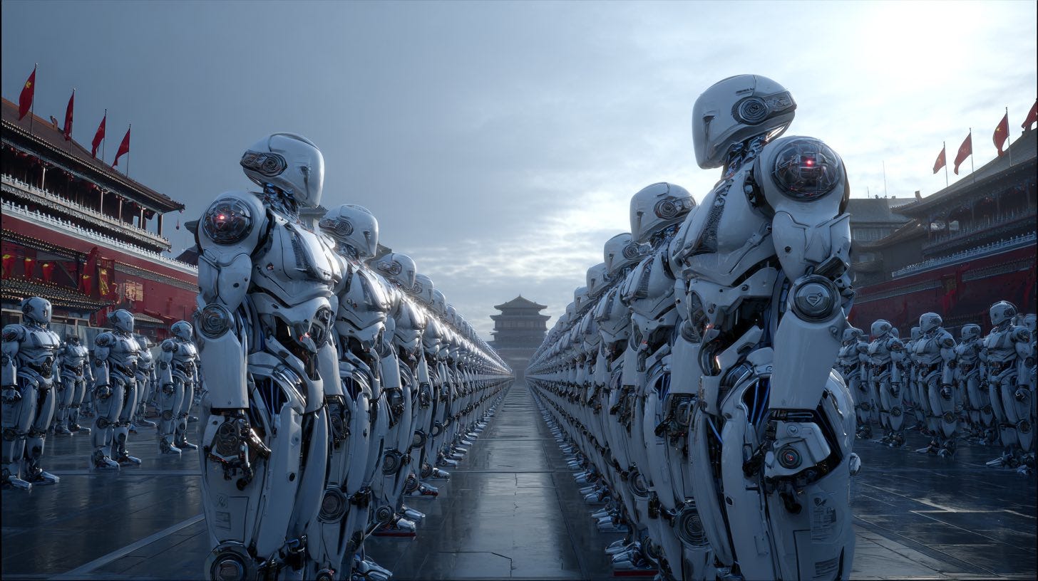 The Chinese government refers to this as “embodied intelligence”—AI embedded within physical bodies. While they host robot marathons, kickboxing matches, and dance events to create the illusion of entertainment, the underlying purpose is far more sinister.